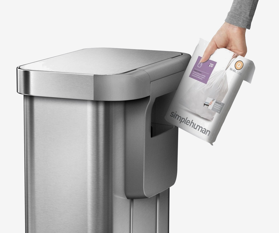 Abbiamo semplificato l'operazione di sostituzione delle fodere con il nostro design del bordo per sacchetti per rendere più veloce e ordinata la raccolta dei rifiuti. È l'unico modo civile per portare fuori la spazzatura.