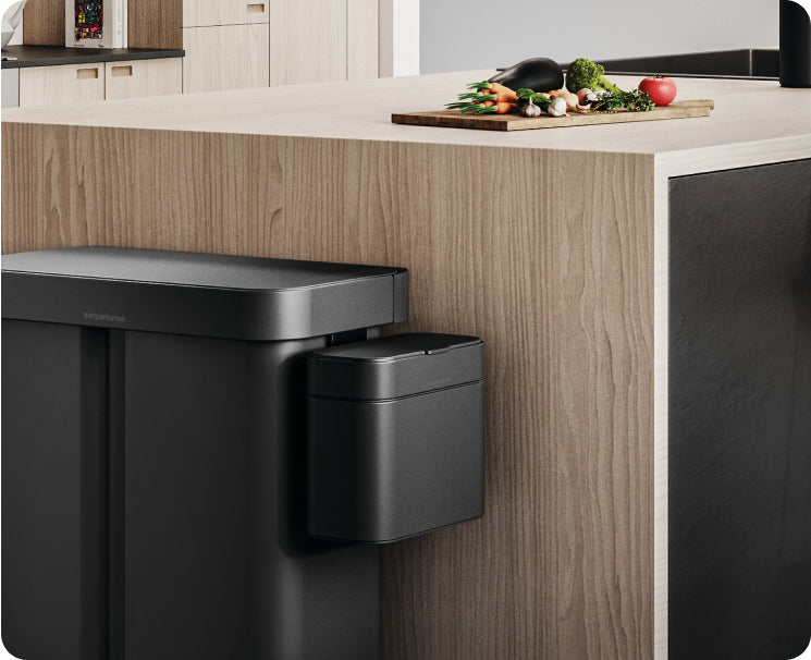 Il nostro bidoncino si aggancia comodamente sul lato dei cestini Simplehuman incoraggiandoti a separare i rifiuti organici, rendendo la gestione dei rifiuti ancora più efficiente.