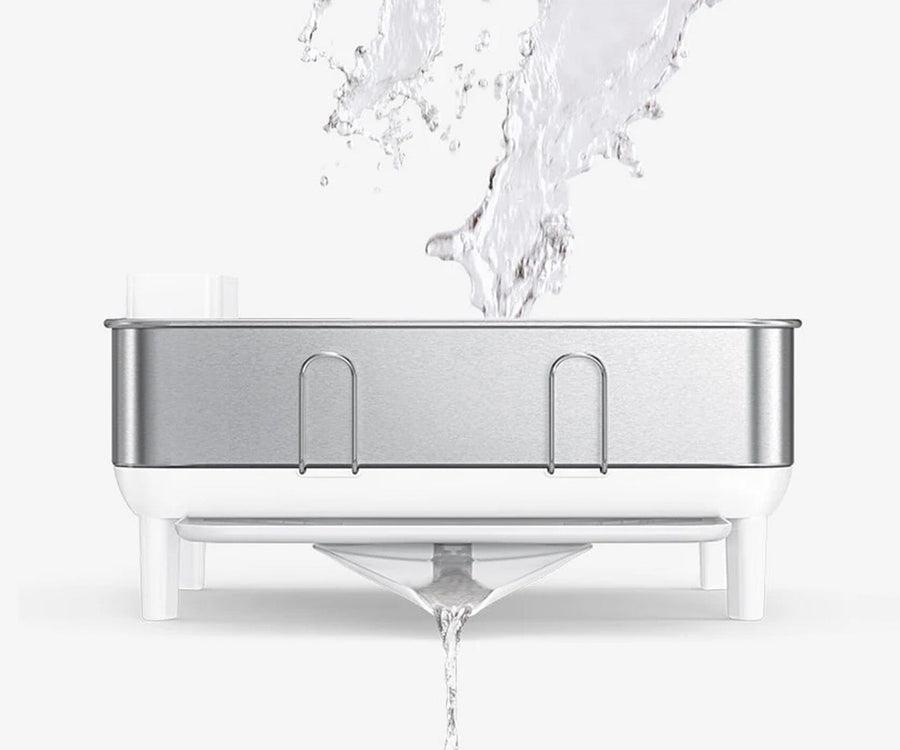 I nostri scolapiatti da appoggio si svuotano rapidamente e in modo ordinato, senza creare accumuli d'acqua, macchie o residui. Disponiamo anche di un beccuccio girevole per lo scarico nel lavandino, indipendentemente dalla posizione dello scolapiatti da appoggio.