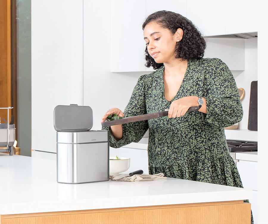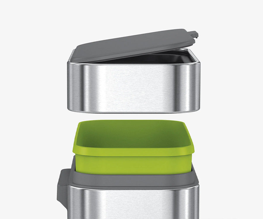 Il coperchio rimovibile e il cestino interno liscio sono pensati per consentire una rimozione, uno svuotamento e un risciacquo efficienti.