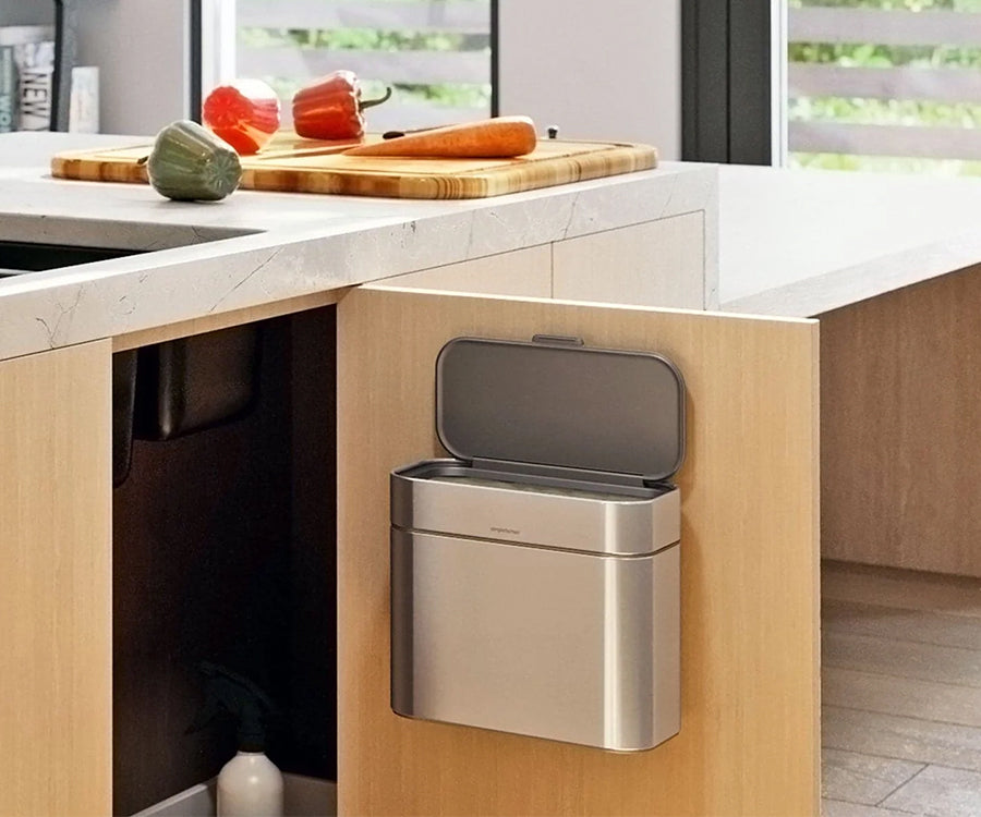 Appendi saldamente il tuo bidoncino sotto al lavello della cucina o a parete con il kit di montaggio a parete per bidoncino. Il bidoncino è dotato di aggancio magnetico, quindi si rimuove facilmente per raccogliere comodamente gli scarti alimentari.