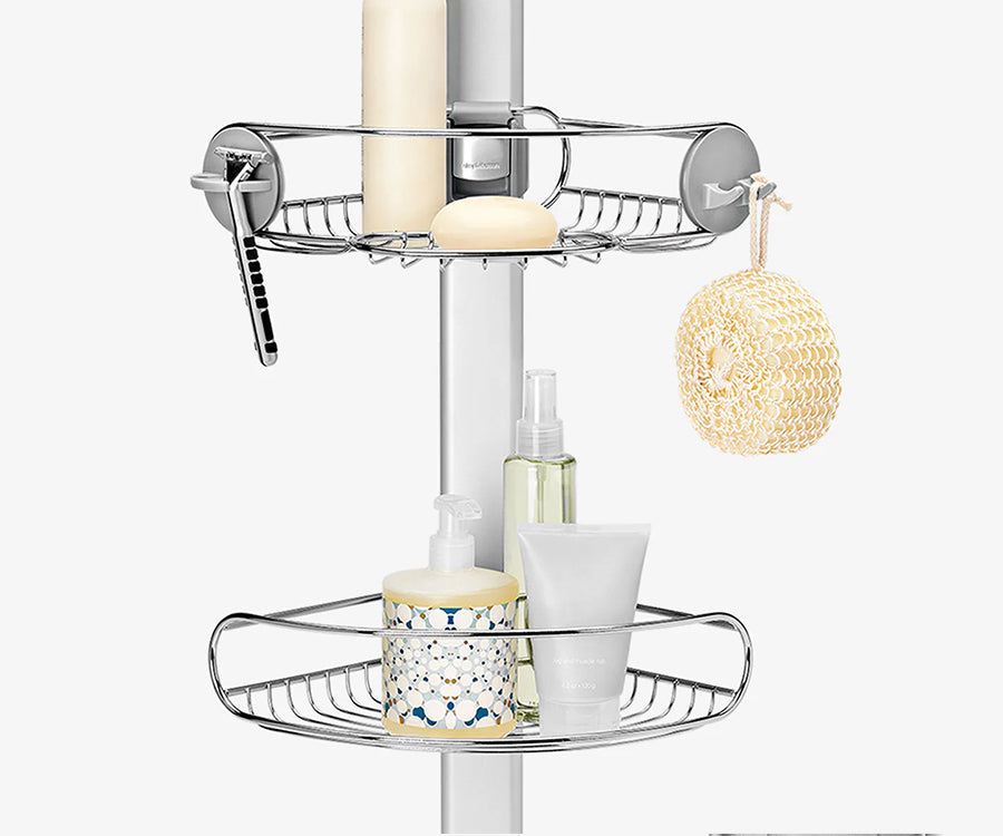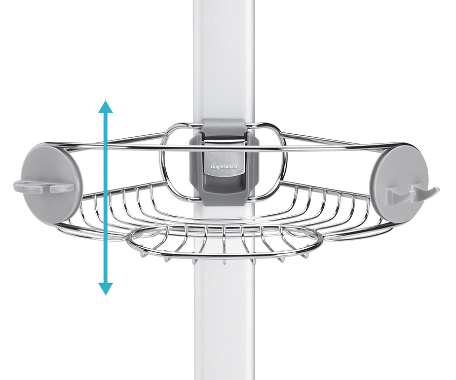 I ripiani regolabili con struttura in filo metallico consentono di personalizzare la mensola da doccia. Falli scorrere verso l'alto o verso il basso per ospitare i flaconi più alti.