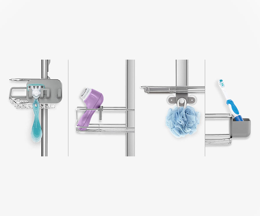 I nostri mensole doccia dispongono di supporto sia dall'alto che dal basso. Ciò garantisce che non oscillino o sbattano in modo che si sentano più come parte dell'accessorio.