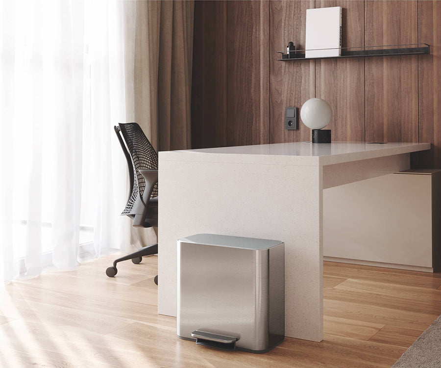 Progettata per le camere d'albergo, per gli uffici domestici o per i piccoli spazi, la nostra mini pattumiera a pedale per raccolta differenziata è dotato di due scomparti perfetti per i rifiuti di tutti i giorni.