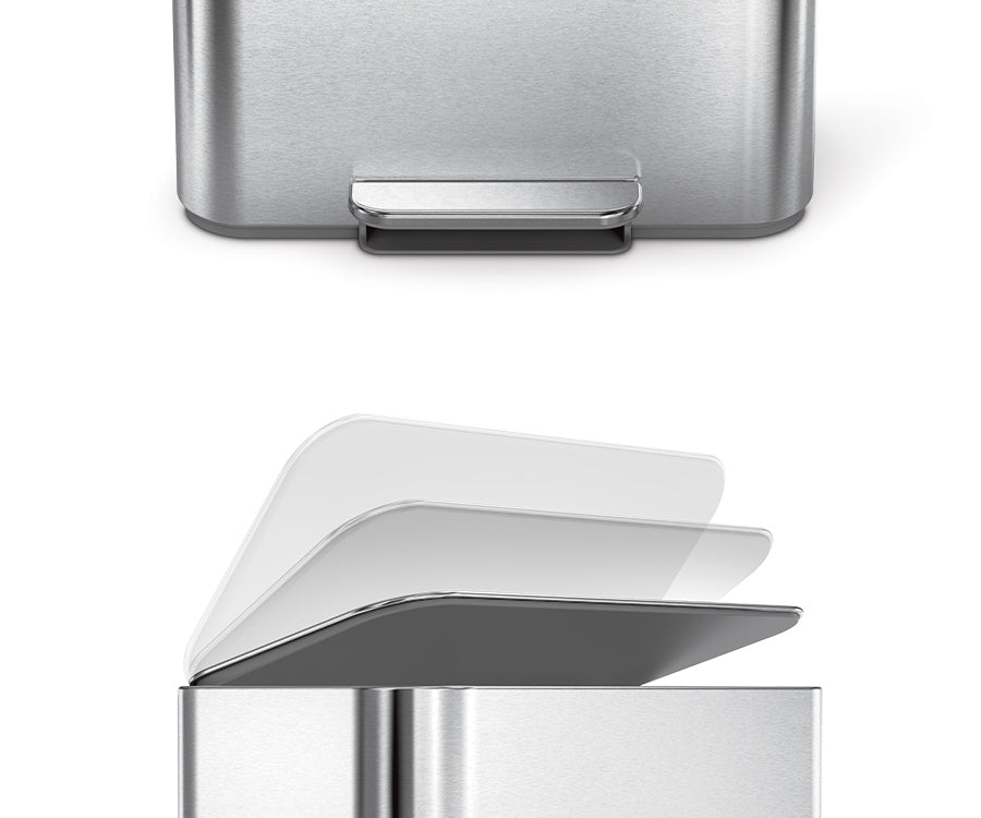 Il robusto pedale è stato progettato per resistere a oltre 150.000 pressioni, più di 20 al giorno per 20 anni, mentre la tecnologia shox brevettata per il coperchio controlla il movimento per una chiusura lenta e silenziosa.