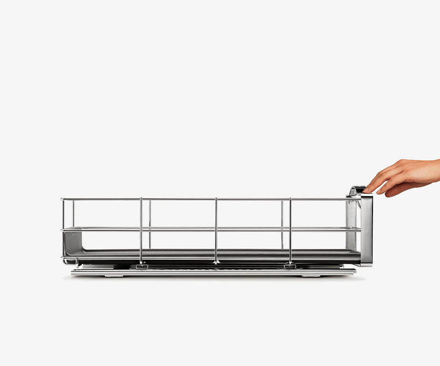 La maniglia in acciaio permette di estrarre rapidamente l'organiser dal cabinet.