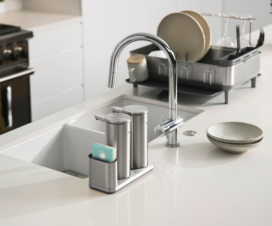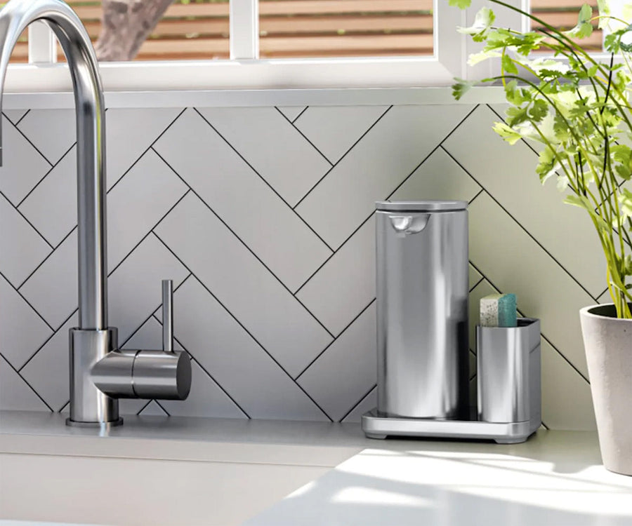 Tieni in ordine il tuo erogatore E la tua spugna grazie al nostro porta-spugna in acciaio inox. Mantieni ordinata la zona del lavandino.