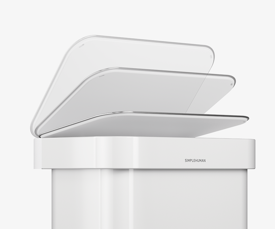 Our liner rim system makes trash faster and neater. Simply lift the lid for easy access, then close it to keep the liner tidy and out of sight.