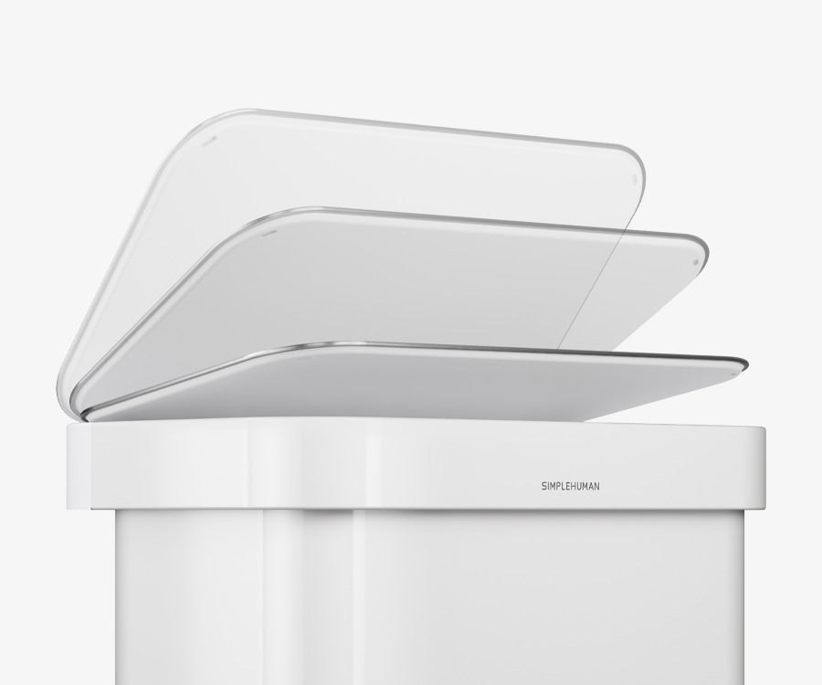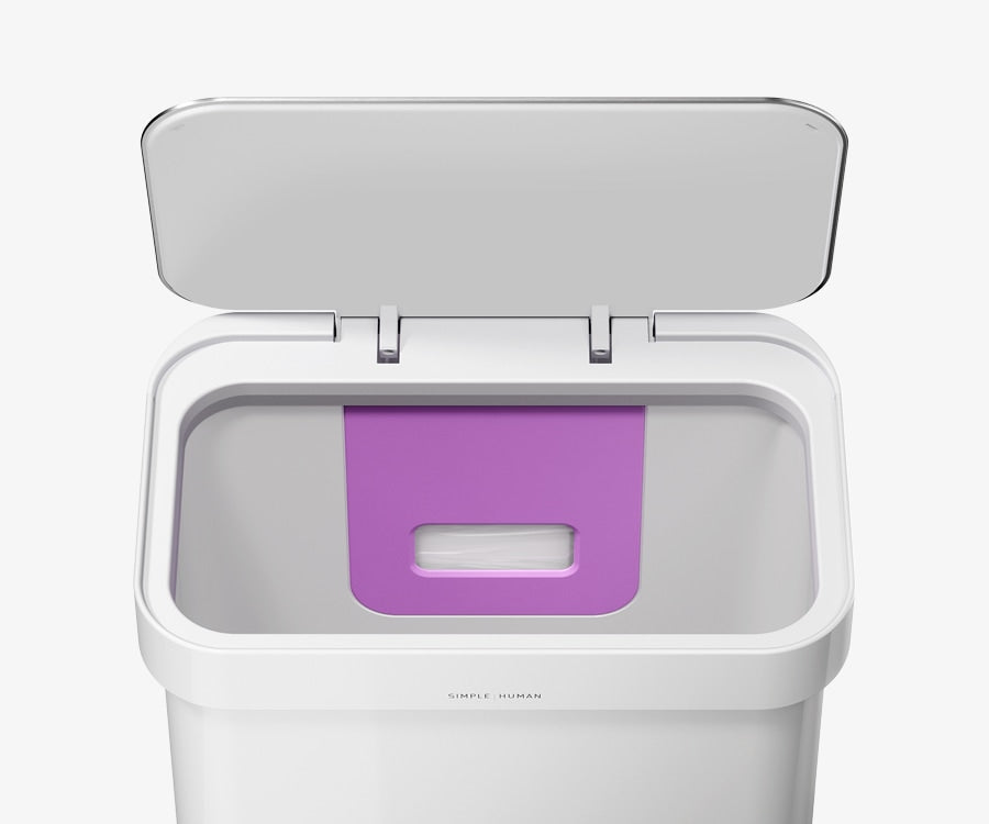 Our liner rim system makes trash faster and neater. Simply lift the lid for easy access, then close it to keep the liner tidy and out of sight.