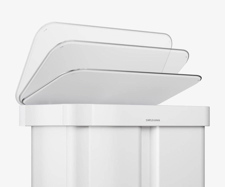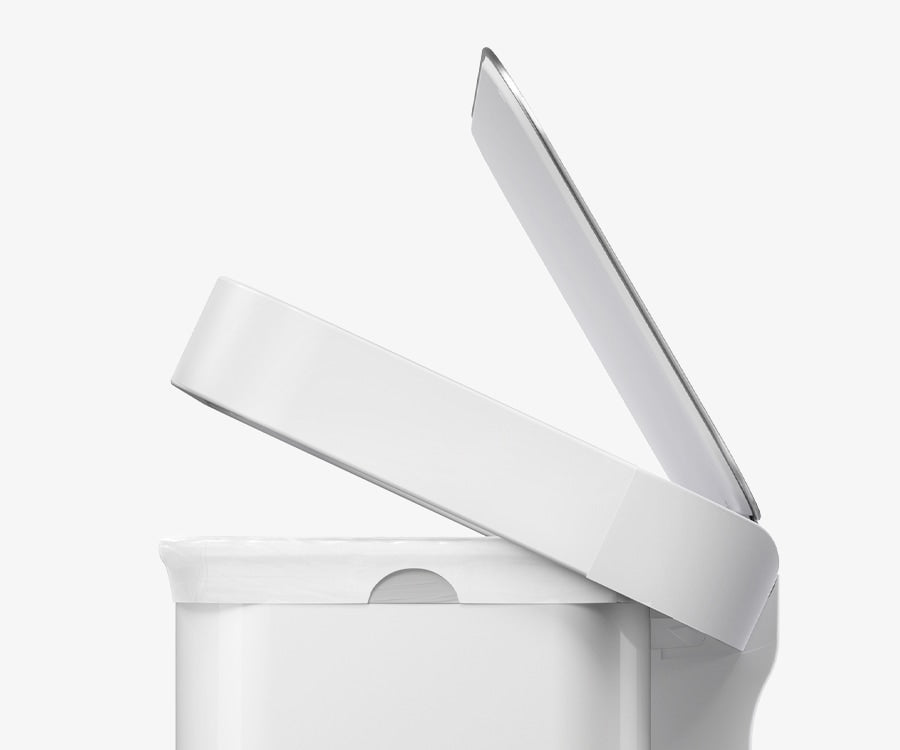 Our liner rim system makes trash faster and neater. Simply lift the lid for easy access, then close it to keep the liner tidy and out of sight.