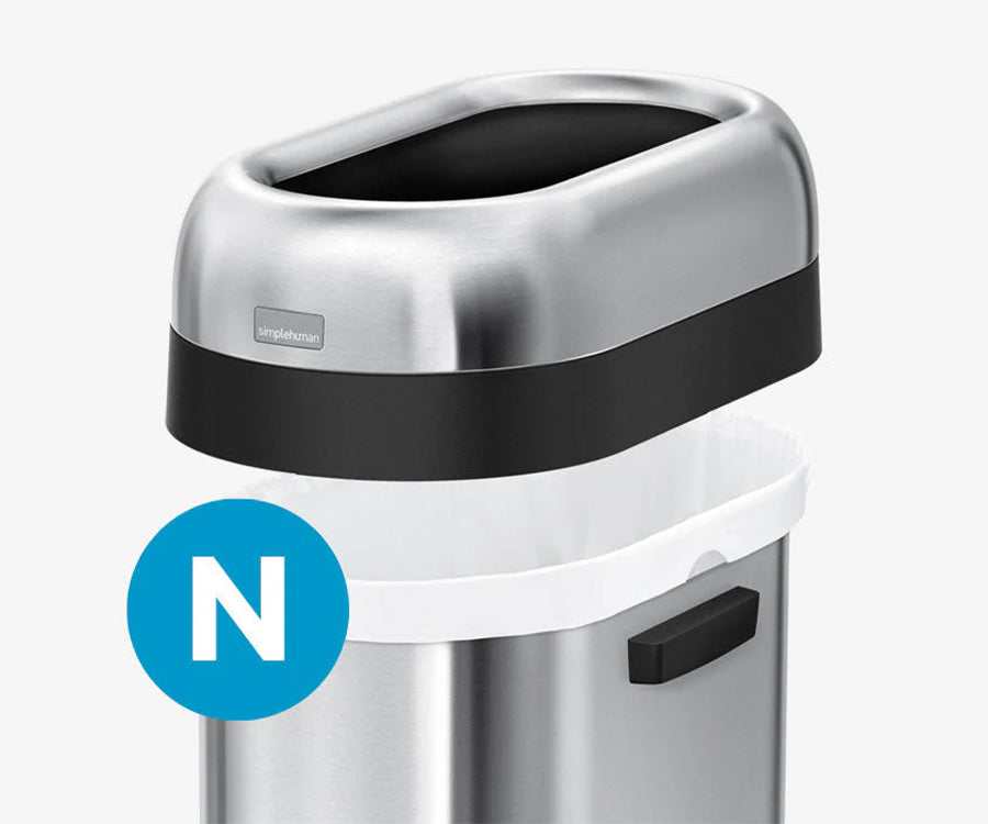 Il coperchio si solleva per rendere la sostituzione del sacchetto più rapida e comoda. E i sacchetti su misura si adattano alla perfezione, senza fuoriscire né scivolare, in modo che il cestino sia sempre pulito e ordinato.