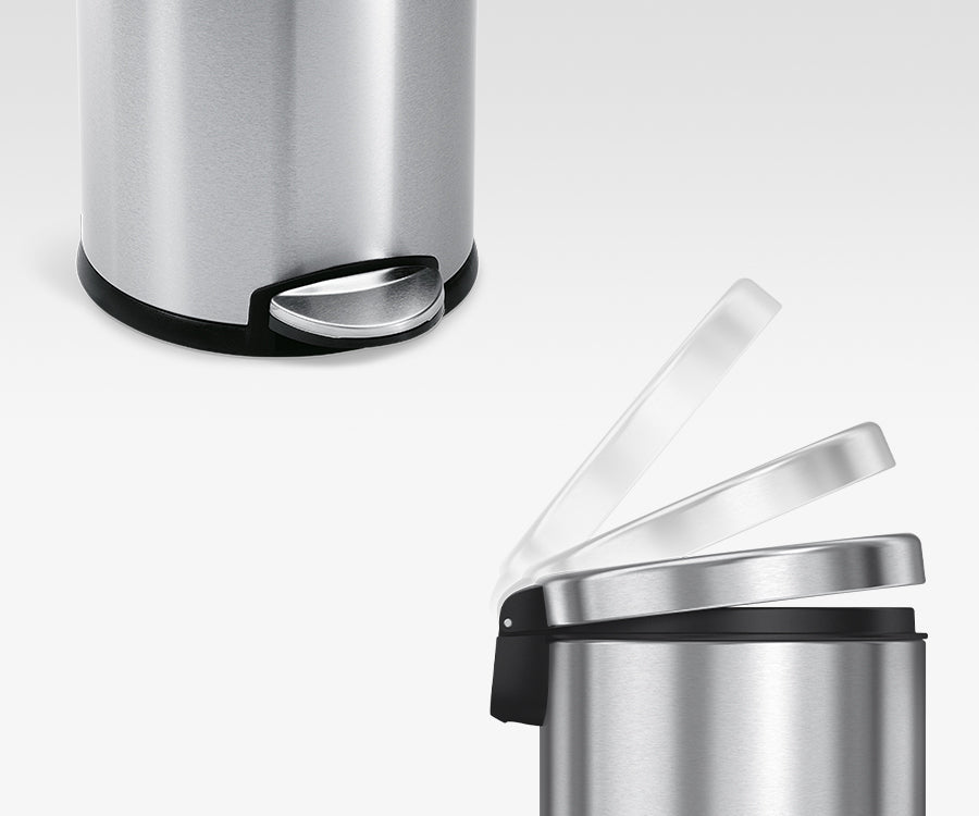Il nostro robusto pedale in acciaio è stato progettato per resistere a oltre 150.000 pressioni, più di 20 al giorno per 20 anni, mentre la tecnologia shox brevettata per il coperchio controlla il movimento per una chiusura lenta e silenziosa.