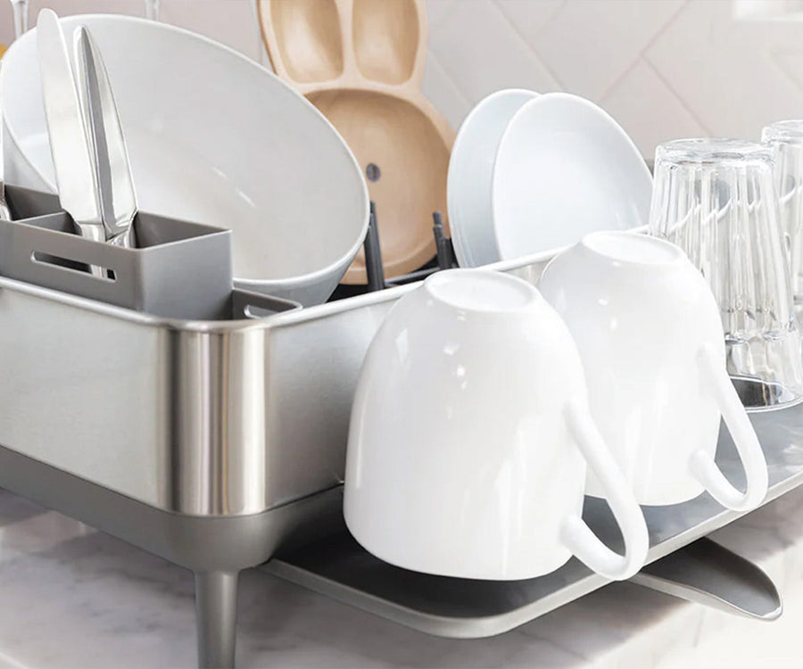 Hai tantissimi piatti e bicchieri da vino di grandi dimensioni? Il nostro scolapiatti da appoggio con telaio in acciaio dispone di una capacità sufficiente e grazie ai portapiatti con cappuccio in silicone, i piatti saranno sempre al sicuro e protetti, senza graffi o scheggiature.