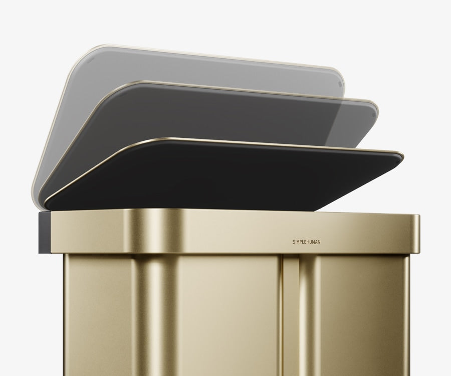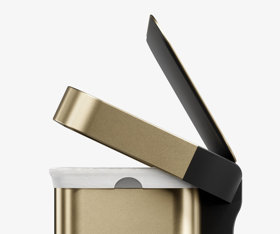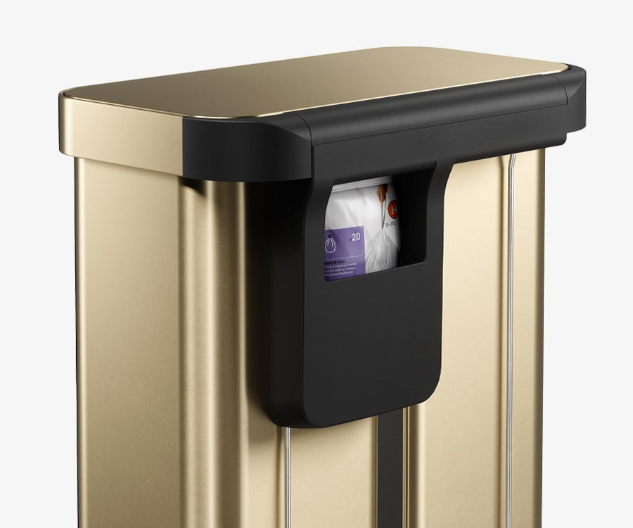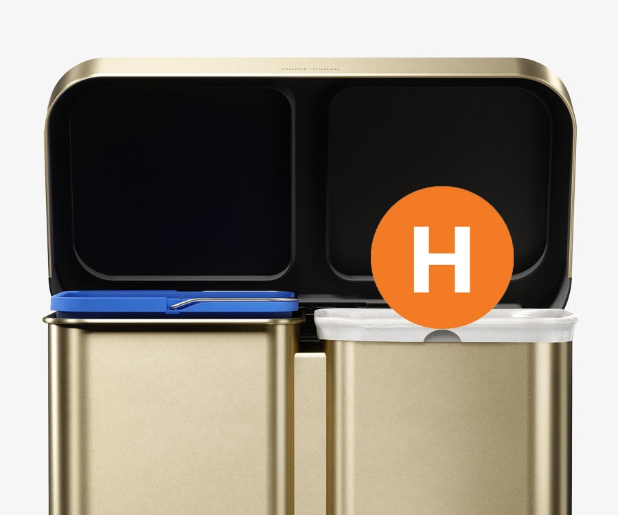 Our liner rim system makes trash faster and neater. Simply lift the lid for easy access, then close it to keep the liner tidy and out of sight.