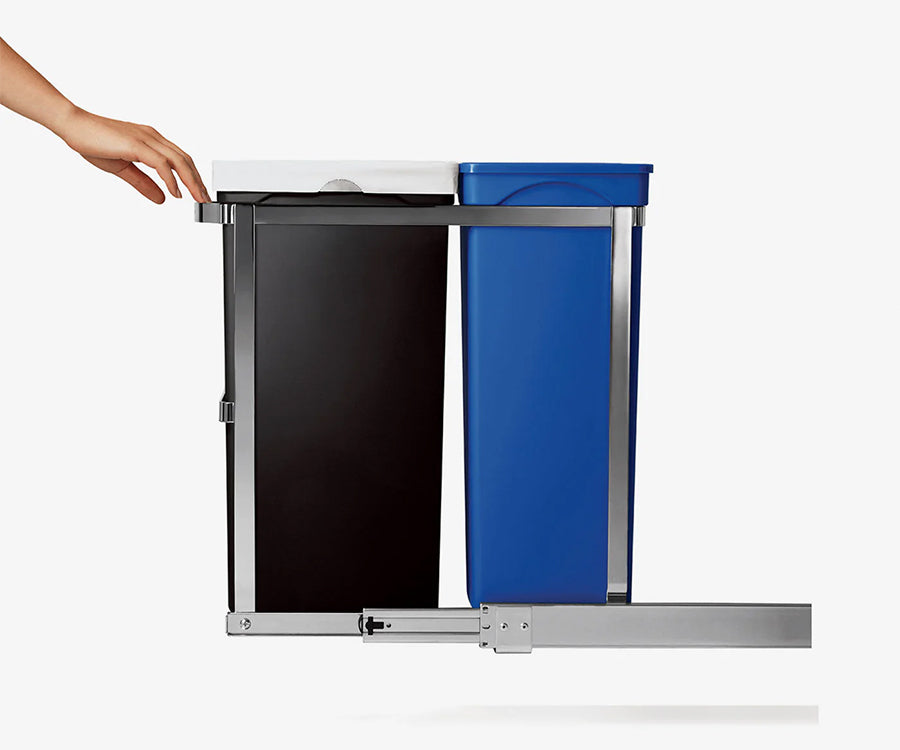 La nostra pattumiera estraibile è progettata per anni di utilizzo. Questo cestino ha un telaio in acciaio inox e scorre completamente fuori dal cabinet su guide con cuscinetti a sfera di grado commerciale per un accesso rapido e facile.